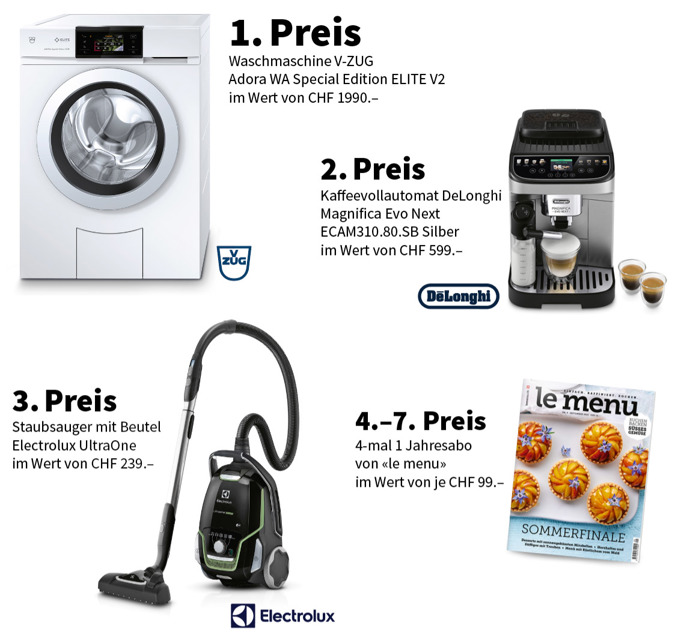 Füllen Sie das Formular aus und gewinnen Sie attraktive Preise im Gesamtwert von über CHF 3200.–