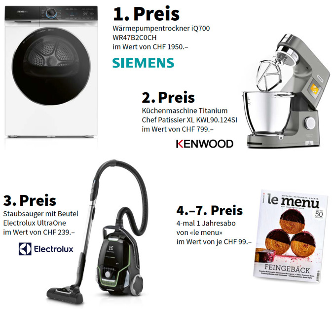 Füllen Sie das Formular aus und gewinnen Sie attraktive Preise im Gesamtwert von über CHF 3300.–