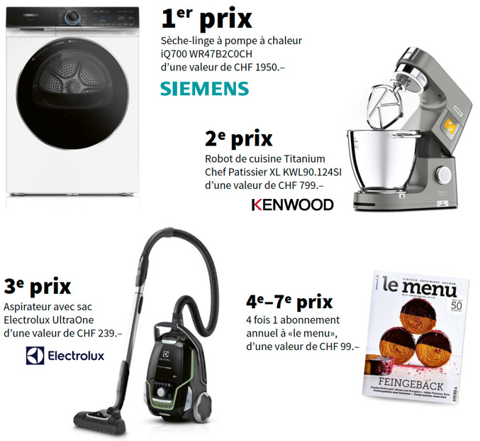 Remplissez le formulaire et gagnez des prix attrayants d’une valeur de plus de CHF 3300.–