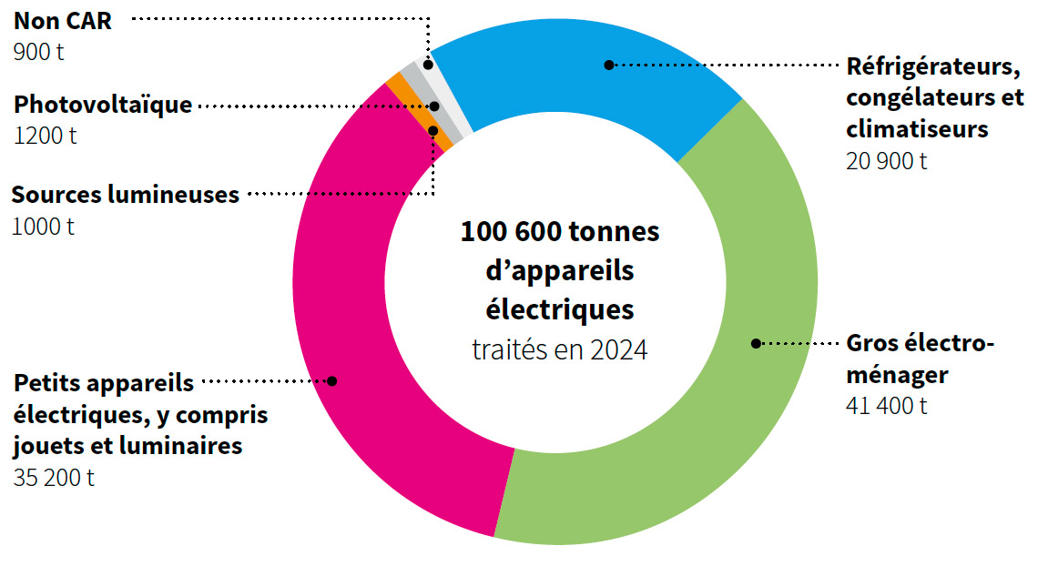 Quantité par type de produit et poids | Source: SENS-eRecycling Factsheet Oekobilanz-2024