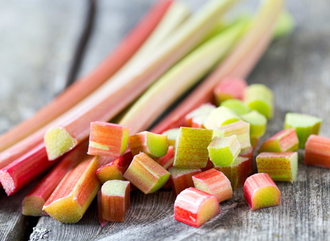 La rhubarbe appartient à la famille des renouées. Du point de vue botanique, il s’agit d’un légume. Avec seulement 13 calories pour 100 grammes, elle affiche une faible teneur en graisse et regorge de vitamines et de minéraux: la rhubarbe contient notamment de la vitamine A et C, du potassium et du fer; elle contient aussi de la pectine, de l’acide malique et de l’acide oxalique qui favorisent la digestion. L’acide malique et l’acide oxalique agissent contre les bactéries dans l’estomac et l’intestin. Enfin, la rhubarbe contribue à éliminer les toxines grâce aux tanins, au potassium et au calcium, qui ont un effet apaisant et drainant. Avec un rejet de 130 grammes de CO₂ pour 100 grammes, elle se distingue par un bilan environnemental avantageux.