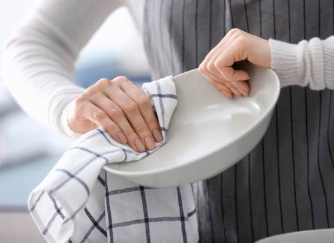 Lavez toujours les torchons séparément. Il existe d’innombrables raisons pour lesquelles les torchons ne doivent pas être lavés en même temps que les draps ou les serviettes : un simple torchon recèle une profusion de bactéries. C’est pourquoi il convient de toujours laver les torchons à vaisselle à plus de 40 °C. À moins que – vous le savez probablement déjà – l’étiquette d’entretien ne recommande des températures inférieures.