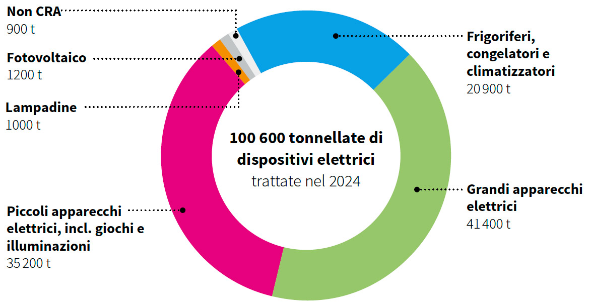 Quantità secondo tipo di prodotto e peso | Fonte: SENS-eRecycling Factsheet Oekobilanz-2024